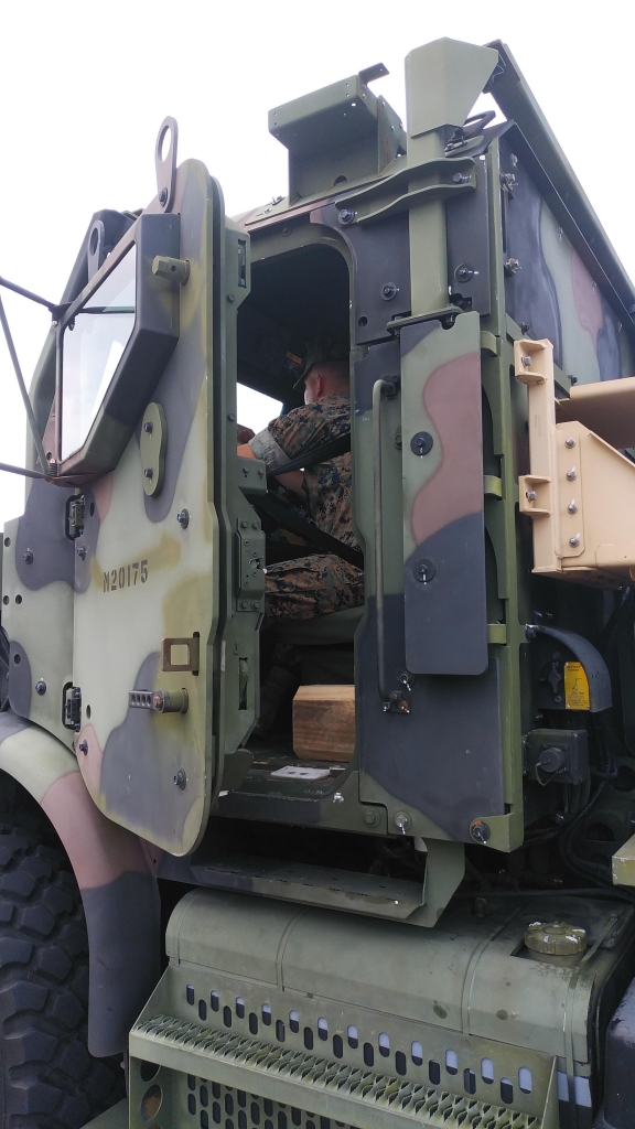 Young military servicemen and women had to hear yelling from protesters and waited inside the vehicle for hours without air condition. The Marine vehicle was trying to enter the port to unload the boat to use for training on the sea.