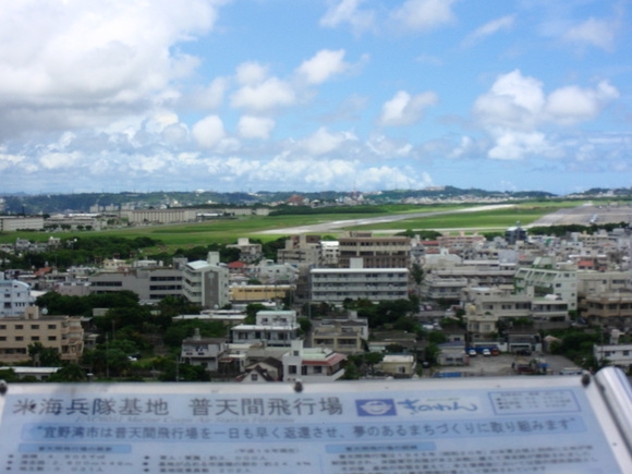 Around planned construction site of runways there are buildings higher than US military aviation standard, flying helicopters or ospreys there might cause collision with these buildings, similar situation to Futenma Air Base in Ginowan city. (The below photo is Futenma base and its surrounding area from observatory site in the city.)
